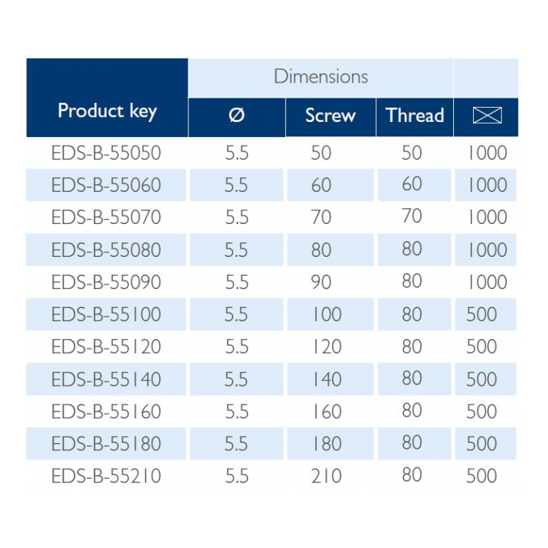 | EDS-B T25 5,5 x 50 | 1000 |