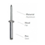 - Peel Rivet kovica Ø 6,4 mm, Al/St, različne dolžine